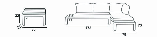 Açıklama Alüminyum konstrüksiyon üzeri statik boyalı alüminyum bahçe oturma grubu yan sehpa 1.sınıf teak ağacından üretilmiştir . Materyal AlüminyumTeak ağacı Boyutlar